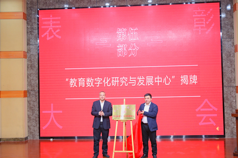 表彰仪式后,举行了av在线看 “教育数字化研究与发展中心”揭牌仪式。为深入实施教育数字化战略行动,促进学科交叉发展,推动信息技术与教育教学深度融合,进一步探索教育治理的创新机制,经学院研究,决定成立av在线看 “教育数字化研究与发展中心”。仪式上,侯琳熙院长与何希耕常务副书记上台为“教育数字化研究与发展中心”揭牌。