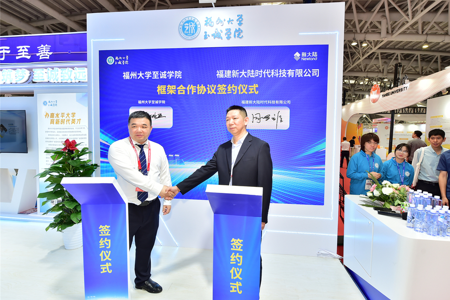 在学院展区,学院还与福建新大陆时代科技有限公司举行校企合作签约仪式。福建新大陆时代科技有限公示总经理周洪耀、av在线看 院长侯琳熙代表双方签订了校企合作框架协议。双方共建人工智能产业学院,共同培养具备深厚理论素养、卓越实践能力与广阔国际视野的高素质应用型人才。