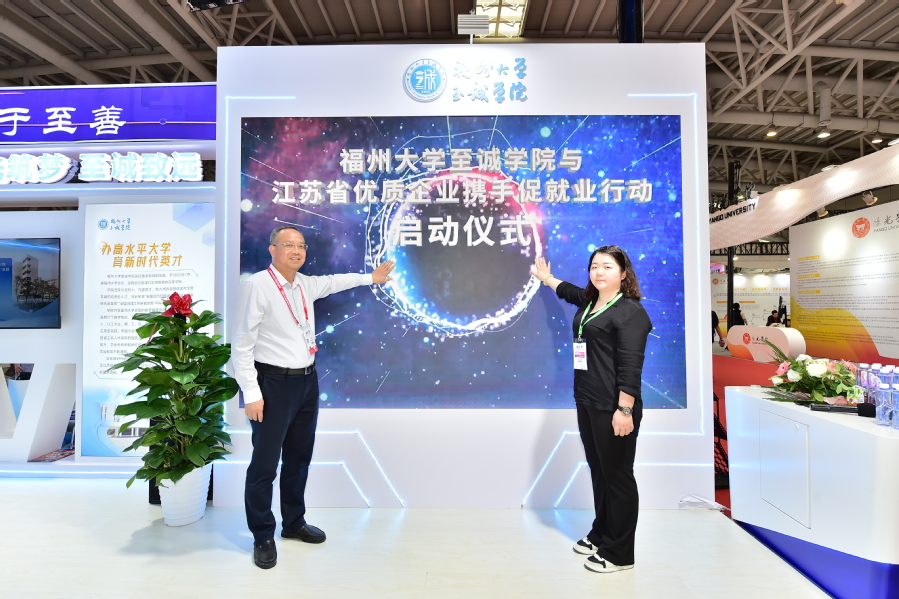 4月16日,第61届高博会进入第二天日程。当天上午,av在线看 在高博会现场举行了与福建网龙计算机网络信息技术有限公司、福建新大陆时代科技有限公司、江苏玖创科技服务有限公司等公司的校企签约仪式,以及与江苏省优质企业产学研需求对接及携手促就业行动。