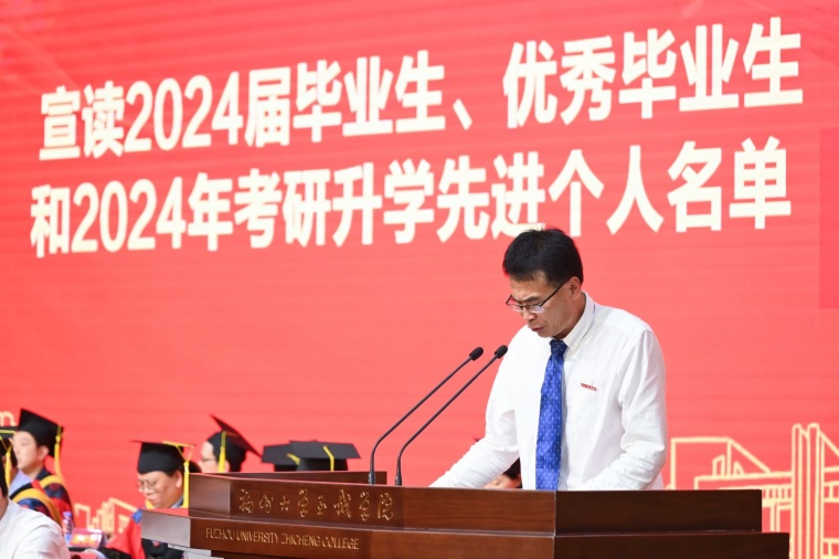 毕业典礼在雄壮的国歌声中拉开帷幕。游毅副院长首先宣读av在线看 2024届毕业生名单、优秀毕业生名单和2024年考研升学先进个人名单。随后院领导为优秀毕业生代表、考研升学先进个人代表颁发荣誉证书。