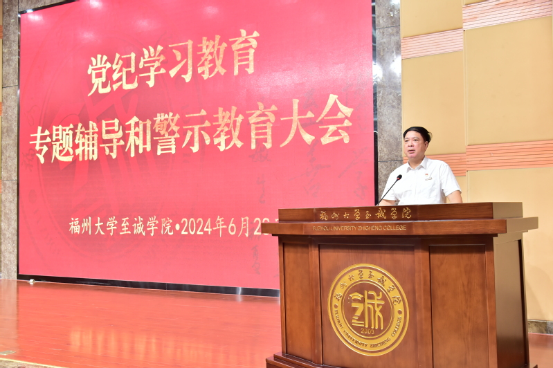 为深入学习习近平总书记关于全面加强党的纪律建设的重要论述,扎实推动学院党纪学习教育走深走实,学习贯彻学校“落实‘四个责任’强化全面从严治党工作”会议精神,充分发挥反面典型警示教育作用,用身边事教育身边人,切实增强学院全体教职工党员的纪律规矩意识和拒腐防变能力,根据学院党纪学习教育工作方案有关要求,6月28日下午,我院在科报厅召开党纪学习教育专题辅导和警示教育大会。学院领导、教职工党员和非党员二级中层副职以上干部参加大会。大会由纪委书记翁德顺主持。