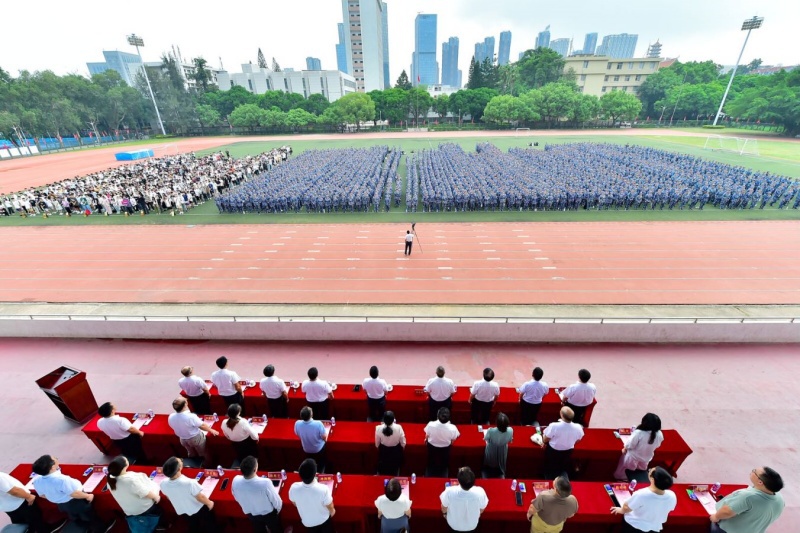 夏蝉声远,秋韵徐来;新荷整束,将启新途。9月12日上午,av在线看 2024级新生开学典礼在怡山校区田径运动场隆重举行。av在线看 党委常委、副校长、av在线看 党委书记郭文忠,av在线看 院长侯琳熙、党委常务副书记何希耕、党委副书记雷晓明、纪委书记翁德顺、副院长游毅、副院长张栋、院长助理徐艺文、院长助理苏童,各系系主任、各部门负责人、全体政工干部及2024级全体新生共同参加典礼。典礼由院党委副书记雷晓明主持。