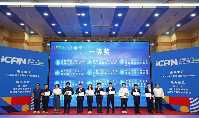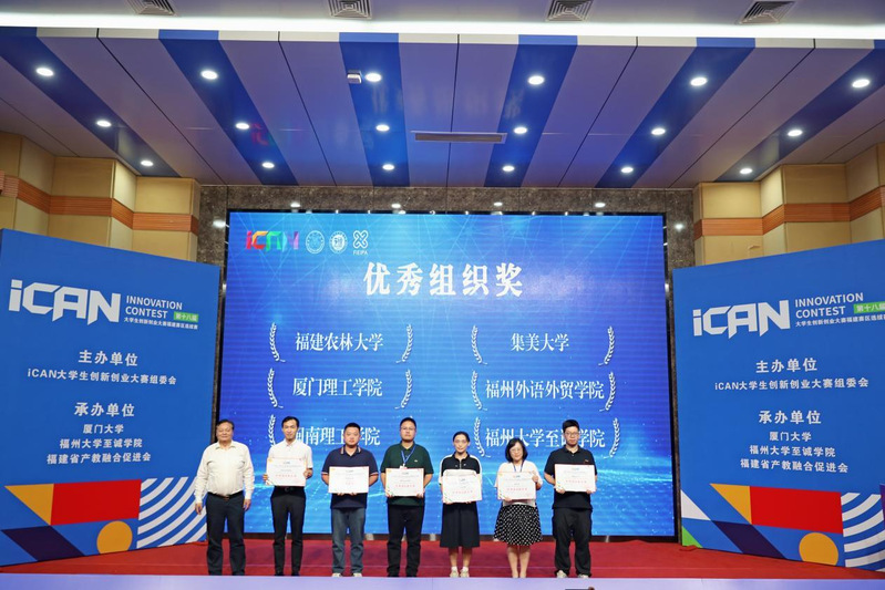 近日,第十八届iCAN 大学生创新创业大赛福建赛区选拔赛决赛成功举办。大赛吸引了厦门大学、福建农林大学等30 所高校的182 支队伍参赛,参赛队伍创历史新高。我院荣获大赛优秀组织奖,4 支参赛队伍脱颖而出,荣获创新创业类项目一等奖3 项、二等奖 1 项,获一等奖数量居福建省高校榜首。获大赛一等奖的队伍,成功晋级全国总决赛。