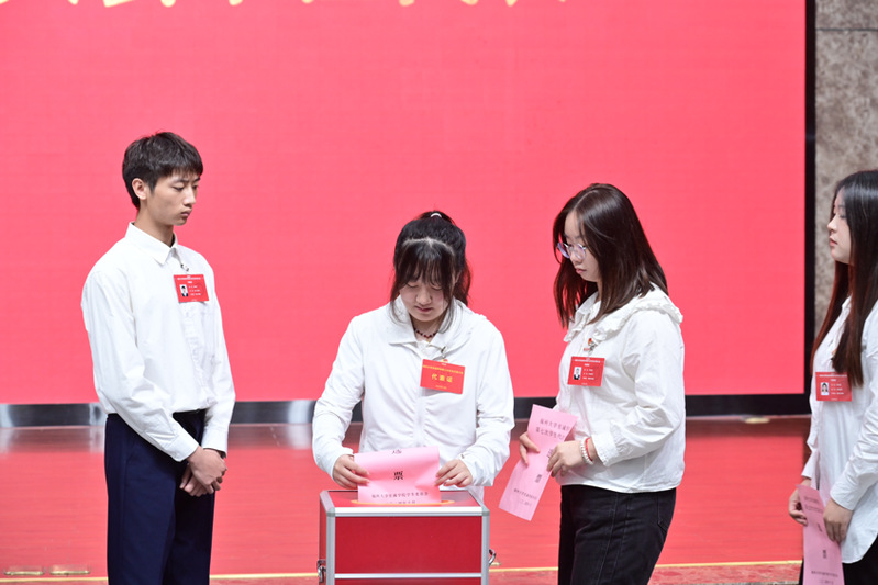 大会审议并通过《av在线看 第七次学生代表大会关于第六届学生委员会工作报告的决议(草案)》,通过无记名投票方式差额选举产生了av在线看 第七届学生会主席团成员及av在线看 第七次学生代表大会常任代表。