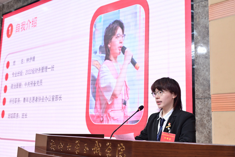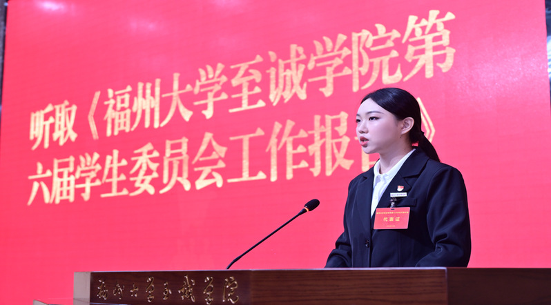 刘茉菲同学代表院第六届学生委员会向大会作题为“奋进不辍守初衷,勠力同心筑未来”的工作报告,总结回顾第六次学生代表大会以来学生会工作,明确下一阶段我院学生会的工作思路和发展目标。