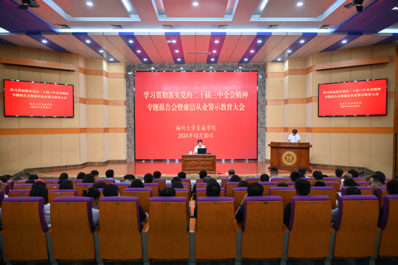 会上,翁德顺纪委书记为全体学院干部作《高校干部职工违规违纪典型案例警示教育》专题辅导报告。他围绕深刻认识把握全会的重大意义、深入学习领会习近平总书记在全国教育大会上的重要讲话精神以及习近平总书记在福建考察时的重要讲话精神,全力以赴抓好全会精神贯彻落实等方面,结合学院纪检工作和师德师风建设工作实际,对党的二十届三中全会精神作了系统阐释和解读。他在报告中通报了近期教育系统内个别领导干部违规违纪典型案例,剖析了案例中领导干部逐步走向违纪违规的原因,并以案释纪、以案明纪,带领全体干部进一步深入学习《中国共产党纪律处分条例》。他希望学院党员领导干部要以案为鉴,真正从内心深处得到警醒、受到教育,切实做到廉政以立身、勤政以为公、善政以增效。