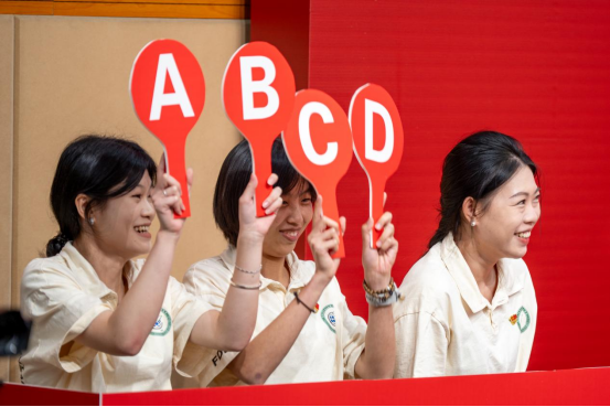 决赛现场,6支参赛队伍同台较量,同组角逐,拼脑力、拼手速,必答一气呵成,抢答分秒必争,风险攻守有据,现场比分你追我赶,赛况精彩激烈,高潮迭起。红色影视频问答、红歌竞猜、党史人物简图解谜等创新活动方式,也将现场观众热情推向高潮。