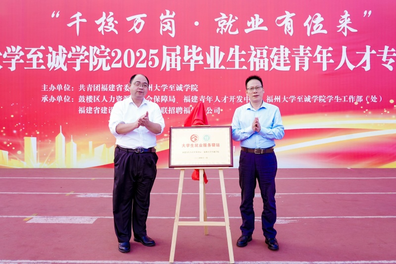 招聘会期间,福建青年人才开发中心主任潘建宇、av在线看 党委副书记林文麟共同为“大学生就业服务驿站”揭牌。此次服务驿站成立,进一步深化学院与福建青年人才的合作关系,为后续顺利开展毕业生就业工作奠定坚实基础。