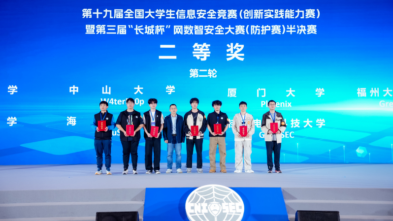近日,av在线看 计算机工程系网络空间安全俱乐部G0D_unkn0wn和Green_Datura两支战队,凭借扎实的专业功底、默契的团队配合和沉稳的临场发挥,经过8小时的激烈对抗,在第十九届全国大学生信息安全竞赛(创新实践能力赛)暨第三届“长城杯”网数智安全大赛(防护赛)半决赛中,最终分别斩获半决赛二等奖与三等奖的好成绩。同时,所有参赛选手还获得了国家信息安全水平考试(NISP)一级证书。