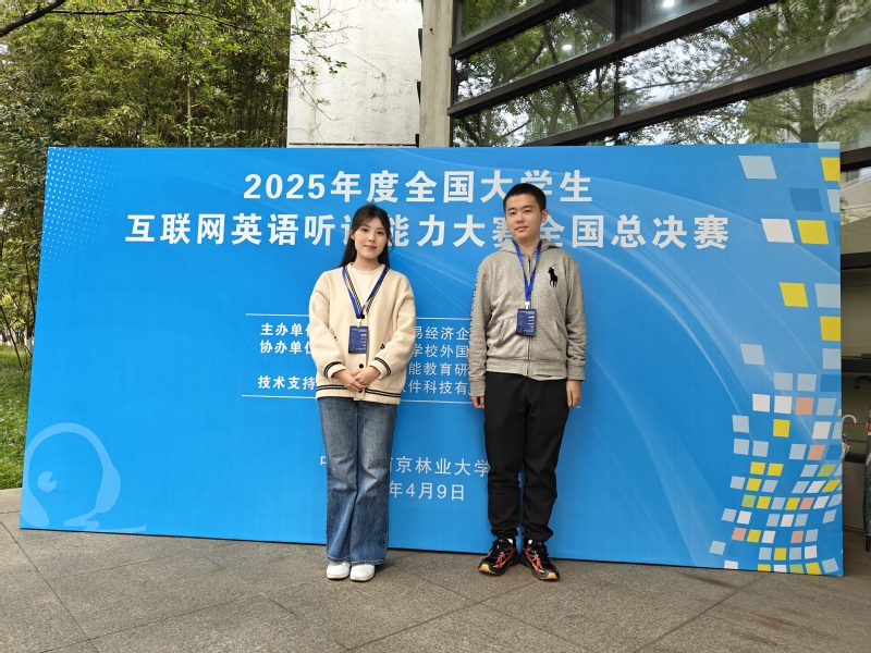 4月8日至4月9日,2025年度全国大学生互联网英语听说能力大赛全国总决赛在南京林业大学圆满落幕。av在线看 外国语系英语专业梁雪怡、陈泽烨凭借扎实的语言功底以福建省省赛一等奖的优异成绩入围本次全国总决赛,最终荣获全国总决赛三等奖。