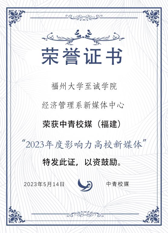 近日,在中国青年报社、中国青少年新媒体协会和中青校媒(福建)共同主办的“2021-2022高校可视化新闻激励计划-寻找高校可视化融媒团队”评选活动中,我院团委融媒体中心、经济管理系新媒体中心双双获评中青校媒(福建)“2023年度影响力高校新媒体”。