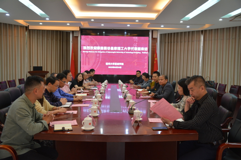 2023年5月23日,泰国曼谷皇家理工大学分管学生事务副校长Chaisak Klaidaeng、分管研究与发展副校长Saichol Chudjuajeen、人文科学学院院长Sirima Silapat、教育学院院长Surasak Sripan、教育学院副院长Chanida Pomsen、人文科学学院院长助理Supaphorn Akkapin、人文科学学院顾问Boonsom Kreukkreun一行七人,在福州如译翻译公司董事长郑如薇、副总经理张宇等人的陪同下访问我院。我院院长陈为旭、院党委常务副书记何希耕、副院长游毅及学院相关系和职能部处负责老师出席接待了来宾。