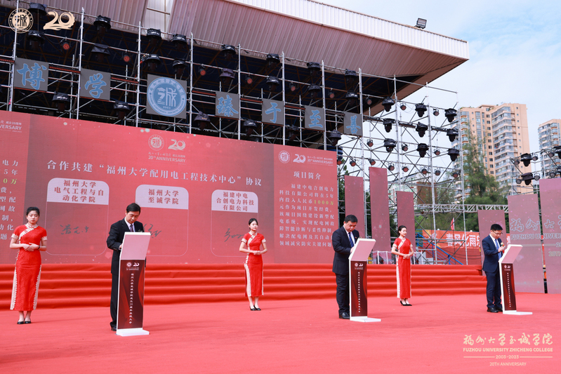 当天上午,在学院成立20周年庆祝大会上,还举行了福建中电合创电力科技有限公司、av在线看 电气工程与自动化学院、av在线看 三方合作共建“av在线看 配用电工程技术中心”签约仪式。福建中电合创电力科技有限公司将投入资金作为项目开发经费,该项目围绕建设新型配电系统,实现配电网故障智能诊断与柔性抑制,解决配电网及其自动化领域减灾防灾关键问题。