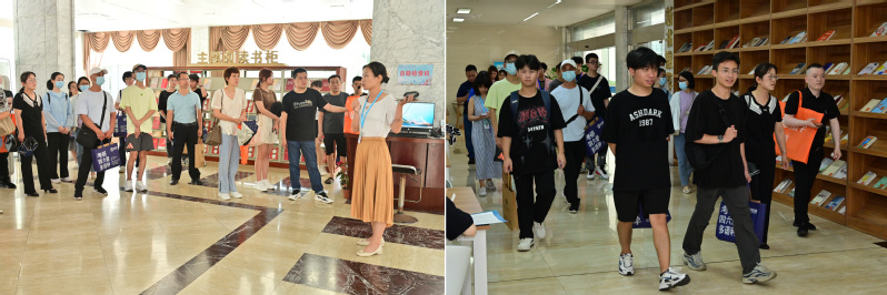 趁着夏风,学生与家长们来到图书馆参观,漫步在馆舍环境优美、阅读氛围浓厚、服务设施完善的智慧图书馆。